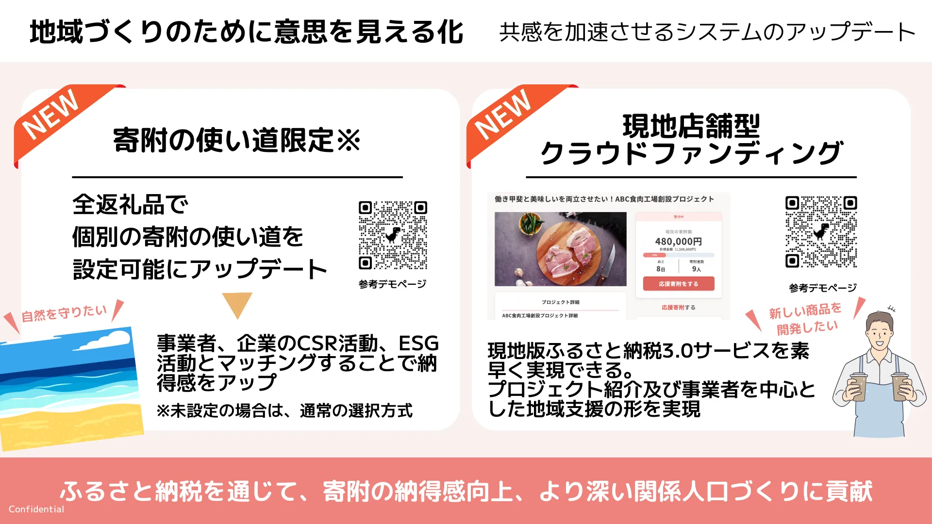 寄附の使い道を限定することでより強い共感を産み、寄附へと繋げる仕組みです。