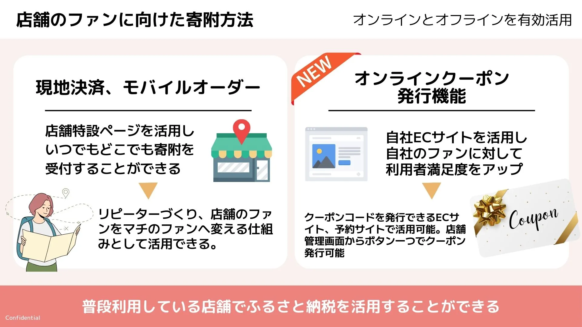 オンラインクーポンは、実店舗が無くECサイト(オンラインショップ)でのみ販売を行う事業者様にもご利用していただける仕組みです。