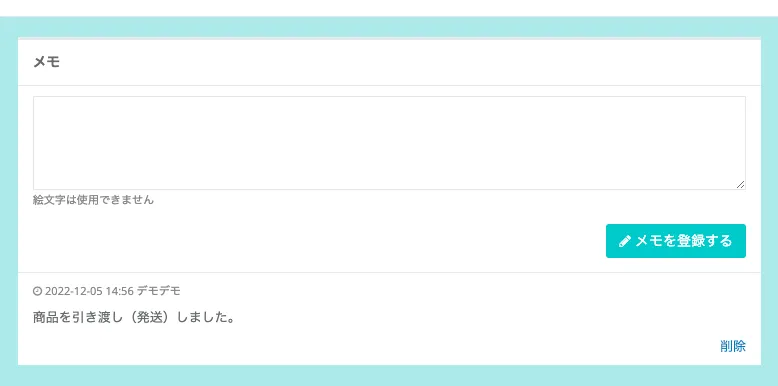 引き渡し完了後は、注文詳細画面のメモで「発送しました」「渡しました」を残します。