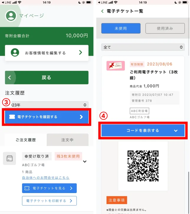 ステップ1:【寄附者さま】スマホで電子チケットを表示する