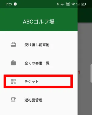 1. 事業者アプリでメニューから 「チケット」 をタップする
