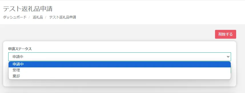 お知らせをクリックすると現在申請されている返礼品が表示されます。