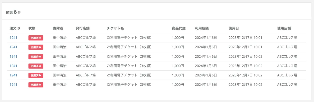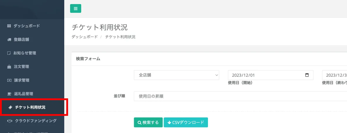 ふるさとズで発行した電子チケットの利用状況は、管理画面から一覧で確認することが可能です。