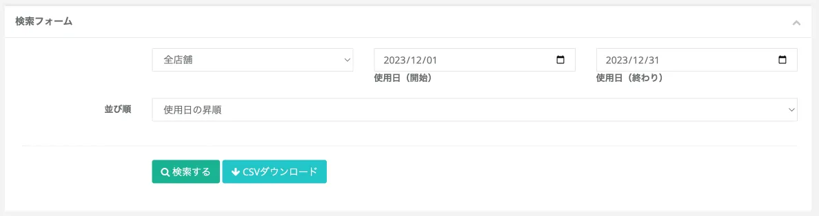 一覧画面上部の検索フォームから、発行した電子チケットの絞り込みが可能です。